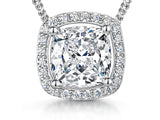 Sterling Silver 8mm Cushion Cut Halo Cubic Zirconia Pendant. 3 Carat Equivalent - Can Be Worn Straight Or Offset. 1.25mm Surrounding Stones. 13mm In Length. 16-18inch Adjustable Chain. The Finest AAA Grade Cubic Zirconia Stones. 925 Silver - Hypoallergenic , Rhodium Finished For Tarnish Free Wear. Comes With Gift Packaging.