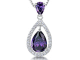 Sterling Silver Amethyst Zirconia  Pear Shape Teardrop Pendant. 7 x 10 Pear Shape Stone, 24 mm Long. Comes With An Adjustable 16-18 Inch Silver Chain. 925 Silver- Hypoallergenic. The Finest AAA Cubic Zirconia Stones. Rhodium Finished for Tarnish Free Wear.  Supplied With Gift Packaging