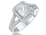 Sterling Silver and White Cubic Zirconia Split Shoulder Ring - Set With A Single Princess Cut Centre Stone with  Stone Set Shoulders. 6 X 8 mm Centre stone with 1.5 mm Stone Set Surrounds .The Finest AAA Grade Cubic Zirconia Stones. 925 Sterling Silver-Rhodium Finished For Tarnish Free Wear. A Ring Sizer Is Provided .Supplied With Gift Packaging