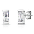 Sterling Silver Rectangle Baguette Style Earrings With Cubic Zirconia Centre. 10mm Overall Diameter. The Finest AAA Cubic Zirconia Stones. 925 Silver -Hypoallergenic, Rhodium Finished For Tarnish Free Wear. Supplied with Gift Packaging.