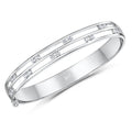 Sterling Silver Bangle Tension Set Style With Cubic Zirconia Stones 18.25 CM Standard Length. Finest AAA Cubic Zirconia Stones . Rhodium Finished Tarnish Free.Supplied with Gift Packaging.