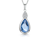 Sterling Silver & Blue Topaz Cabouchon  Cut Cubic Zirconia Teardrop Pendant  16-18inch Adjustable Chain.. 925 Silver - Hypoallergenic , Rhodium Finished For Tarnish Free Wear. Supplied With Gift Packaging.