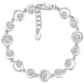 Sterling Silver Bracelet Featuring Circles of Silver And Brilliant Cut 3 mm Cubic Zirconia Stones. 18.25 CM Standard Length. The Finest AAA Grade CZ Stones . 925 Silver- Hypoallergenic. Rhodium Finished For Tarnish Free Wear Supplied with Gift Packaging