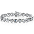 Sterling Silver Bracelet With 7mm Rubover Cubic Zirconia's. 18.25cm Long, Snap Fastening. The Finest AAA Grade Cubic Zirconia Stones. 925 Silver - Hypoallergenic , Rhodium Finished For Tarnish Free Wear. Supplied With Gift Packaging.