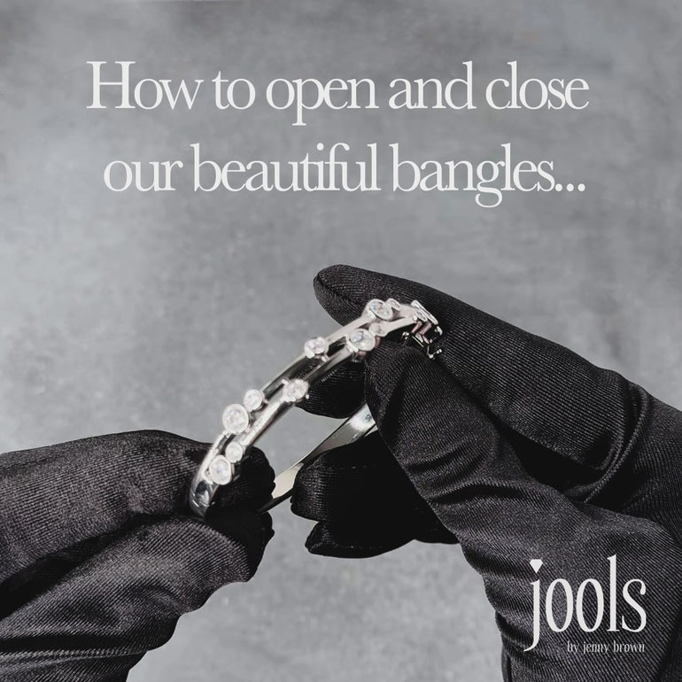 Sterling Silver and Cubic Zirconia Bubble Bangle Set With 24 X 0.10 Carat Round Brilliant Cut Cubic Zirconia Stones.18.25 CM Standard Length. AAA Grade Finest CZ Stones .Rhodium Finished Tarnish Free. Supplied with Gift Packaging