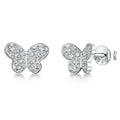 Sterling Silver Pave Set Butterfly Earrings With Cubic Zirconia Stones . Set With 1 mm Stones .Overall Diameter 10 MM. 925 Silver- Hypoallergenic. The Finest AAA Cubic Zirconia Stones. Rhodium Finished for Tarnish Free Wear. Supplied With Gift Packaging.
