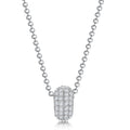 Sterling Silver Circle Bead Pave Set With Cubic Zirconia Stones . 1.5mm Cubic Zirconia Stones . Overall Diameter 7 x 11mm . Rhodium Finished For Tarnish Free Wear.  The Finest AAA Cubic Zirconia Stones. Comes on A 16-18 Inch Silver Ball Chain. Supplied With Gift Box Packaging