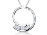 Sterling Silver Circle Pendant With Set Between Five 2mm Round Cubic Zirconia Stones . Overall Diameter 20mm . Rhodium finished- Tarnish Free.  Finest AAA CZ Stones. Comes on A 16-18 Inch Silver Chain. Supplied With Gift Box Packaging
