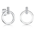 Sterling Silver Circle Stud Earrings With 1.5mm Cubic Zirconia Set Decorative Bar. 11x14mm Overall Diameter. The Finest AAA Grade Cubic Zirconia Stones. 925 Silver - Hypoallergenic , Rhodium Finished For Tarnish Free Wear. Supplied With Gift Packaging.