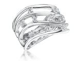 Sterling Silver Four Stranded Band Ring Set With Eight Round  2mm Cubic Zirconia Stones. The Finest AAA Grade Round Cubic Zirconia Stones. Rhodium Finished - Tarnish Free. Ring Sizer Provided . Comes With Gift Packaging.