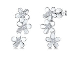 Sterling Silver Cubic Zirconia Triple Flower Drop Earrings
