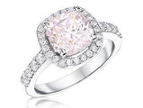 Sterling Silver Ring Set with An 8mm Cushion Cut Light Pink  Zirconia Stone with a White Stone Surround. 3 Cushion Carat Weight with Stone Set Shoulders. . 925 Silver- Hypoallergenic. The Finest AAA Cubic Zirconia Stones. Rhodium Finished for Tarnish Free Wear. A Ring Sizer Is Provided With Your Order. Supplied With Gift Packaging.