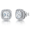 Sterling Silver Cushion Cut Halo Stud Earrings
