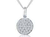 Silver Disc Pendant Set with Circles Of Round Brilliant 1.5mm White Zirconia Stones. Overall Diameter 19mm . 925 Silver- Hypoallergenic. Rhodium Finished For Tarnish Free. Finest AAA CZ Stones. Comes on A 16-18 Inch Silver Chain. Supplied With Gift Packaging