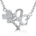 Sterling Silver Double Flower With Plain and Stone Encrusted Petals On A Fixed Chain 20mm Overall Diameter. 925 Silver- Hypoallergenic. Rhodium Finished For Tarnish Free Wear. Finest AAA Cubic Zirconia Stones. Comes On a 16-18inch Adjustable Silver Chain. Supplied With Gift Packaging