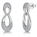 Sterling Silver Earrings With Interlocking Circles Set With Cubic Zirconia's . 23 mm Long. The Finest AAA Cubic Zirconia Grade Stones . 925 Silver- Hypoallergenic. Rhodium Finished For Tarnish Free Wear. Supplied with Gift Packaging.