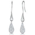 Sterling Silver Fishhook Drop Earrings With Pave & Plain Silver Pear Drops. 5x30mm Overall Diameter. The Finest AAA Grade Cubic Zirconia Stones. 925 Silver - Hypoallergenic , Rhodium Finished For Tarnish Free Wear. Supplied With Gift Packaging.