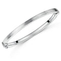 A Timeless Piece Crafted From Italian Sterling Silver, This Bangle Offers A Ridged Texture And A Spring Hinge For The Perfect Fit. Its Oval Shape Hugs The Wrist, While The Figure Of 8 Safety Catch Secured The Piece. Made in italy.Comes With Gift Packaging