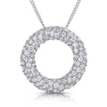Sterling Silver Pave Set Garland Circle Pendant Fully Set With 1.5mm White Cubic Zirconia Stones. Overall Diameter 20mm . Rhodium Finished- Tarnish Free. Finest AAA CZ Stones. Comes on A 16-18 Inch Silver Chain. Supplied With Gift Packaging