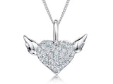 Sterling Silver Heart and Wings Pendant. 18 MM Long. The Finest AAA Cubic Zirconia Stones. 925 Sterling Silver-Tarnish Free. Comes on a 16-18 inch Adjustable Chain. Supplied With Gift Packaging.