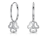 Sterling Silver Open Flower Lever back Drop Earrings With A Cubic Zirconia Set Petal and Centre Stone. 18mm Hoop & 11mm Flower Diameter. 925 Silver- Hypoallergenic. Rhodium Finished For Tarnish Free Wear. The Finest AAA Cubic Zirconia Stones. Supplied With Gift Packaging.