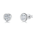 Sterling Silver Cubic Zirconia 1 Carat Brilliant Cut Round  Rub Over Stud Earrings. 8.5mm Overall Diameter. The Finest AAA Grade Cubic Zirconia Stones. 925 Silver - Hypoallergenic , Rhodium Finished For Tarnish Free Wear.  Supplied With Gift Packaging