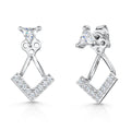Sterling Silver Jacket Earring With Triangle CZ Stud & V Cubic Zirconia's. 1.25mm&  4x4mm triangle. 10x18mm Overall Diameter. 925 Silver - Hypoallergenic , Rhodium Finished For Tarnish Free Wear. The Finest AAA Grade Cubic Zirconia Stones. Supplied With Gift Packaging.