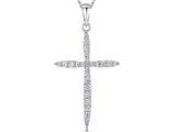 Sterling Silver Cross Encrusted With  A Brilliant Cut Round  1.5mm White Zirconia Stones.  19 X 34mm Overall Diameter. On a 16-18 Inch Adjustable Chain. The Finest AAA Cubic Zirconia Stones. 925 Sterling Silver-Tarnish Free. Supplied with Gift Packaging.