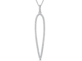 Sterling Silver Long Narrow Oval, Vertical Marquise  Shape Pendant Set With Cubic Zirconia Stones. Overall Diameter 10 x 56mm. Comes on a 16-18 inch Adjustable Chain. Finest AAA Grade Cubic Zirconia Grade Stones. Rhodium Finished- Tarnish Free. Comes With Gift Packaging.