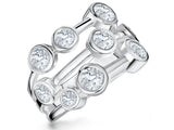 Sterling Silver Bubble Ring Set With 9 Bezel Set Cubic Zirconia's. Approx. 1.29 Carat Weight Total. The Finest AAA Grade Cubic Zirconia Stones. 925 Silver-Hypoallergenic. Rhodium Finished For Tarnish Free Wear. A Ring Sizer Is Supplied. Comes With Gift Packaging