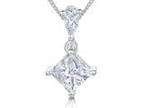 Sterling Silver Square Princess Cut Solitaire Pendant. 17 mm Long set with a 6 MM Centre Stone.  Rhodium finished- Tarnish Free. Comes On An 16-18 inch Italian Silver Chain .The Finest AAA' CZ stones. Comes With Gift Packaging.