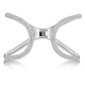 Sterling Silver Open Curve Hinged Bangle Set With Cubic Zirconia Stones 18.25 CM Standard Length. 36 x 53 x 60 mm Overall Diameter . Finest AAA Cubic Zirconia Stones . Rhodium Finished- Tarnish Free.Supplied with Gift Packaging