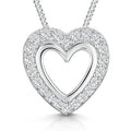 Sterling Silver Open Heart Pendant with Stone Set Surround. Set With The Finest  AAA Quality Cubic Zirconias. Rhodium Finished For Tarnish Free Wear.13mm In Diameter. Supplied On a 16-inch Adjustable Chain & With Gift Packaging.