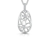 Sterling Silver Oval Pendant Filled With Flowers & 2 Cubic Zirconia's. 10x22mm Overall Diameter. Comes With A 16-18inch Adjustable Silver Curb Chain.925 Silver - Hypoallergenic , Rhodium Finished For Tarnish Free Wear. The Finest AAA Grade Cubic Zirconia Stones. Supplied With Gift Packaging.