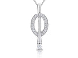 Sterling Silver Oval Pendant With 1mm Pave Cubic Zirconia's And A 3mm Solitaire Set Pin Through The Centre. 26mm In Length16-18inch Adjustable Chain The Finest AAA Grade Cubic Zirconia Stones. 925 Silver - Hypoallergenic , Rhodium Finished For Tarnish Free Wear. Supplied With Gift Packaging.