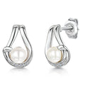 Sterling Silver And Pearl Earrings With A Single Pearl In An Open Loop Part Zirconia Setting. Set With A 5.5 Mm Pearl Overall Diameter 11 X 15mm.  925 Silver- Hypoallergenic . Rhodium Finished For  Tarnish Free Wear. Comes With Gift Packaging.