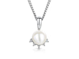 Sterling Silver And Pearl Necklace Set With Five White Zirconia Stones Halo Surround. 7mm Freshwater Pearl. Overall Diameter 9 X 15 Mm. Comes On A 16 - 18 Inch Adjustable Chain. The Finest AAA Grade Cubic Zirconia Stones.  925 Silver - Hypoallergenic , Rhodium Finished For Tarnish Free Wear.  Supplied With Gift Packaging. Matching Earrings Available