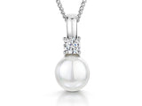 Sterling Silver Pendant Featuring A 7mm Freshwater Pearl Topped With A 3.5mm Cubic Zirconia. Comes On A 16 - 18 Inch Adjustable Chain. The Finest AAA Grade Cubic Zirconia Stones.  925 Silver - Hypoallergenic , Rhodium Finished For Tarnish Free Wear.  Supplied With Gift Packaging