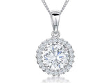 Sterling Silver Halo Pendant With Cubic Zirconia 21mm Long Set With 8mm 2 Carat Centre Stone. The Finest Cubic Zirconia Stones. 925 Sterling Silver-Tarnish Free. Supplied with Gift Packaging.