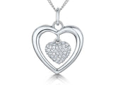 Sterling Silver Outer and Inner CZ Heart Pendant. The Finest AAA Cubic Zirconia Stones. 925 Sterling Silver-Tarnish Free. Supplied with Gift Box and Bag. Comes on a 16-18 inch Adjustable Chain. Supplied with Gift Packaging.