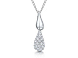 Sterling Silver Pendant With Polished Silver Pear drop & 0.75, 1mm Pave Pear drop. 6x22mm Overall Diameter. 16-18inch Adjustable Chain. The Finest AAA Grade Cubic Zirconia Stones. 925 Silver - Hypoallergenic , Rhodium Finished For Tarnish Free Wear. Supplied With Gift Packaging