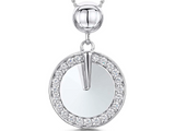 Sterling Silver Polished Disc Pendant With A White Cubic Zirconia Surround With A Silver Ball Bale Overall Diameter XX .925 Silver- Hypoallergenic. The Finest AAA Cubic Zirconia. Rhodium Finished For Tarnish Free Wear. Comes On a 16-18inch Adjustable Silver Chain. Supplied With Gift Packaging .