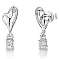 Sterling Silver And Cubic Zirconia Heart Drop Earrings Set With Two  Cubic Zirconia Stones- Overall Diameter 6 x16  mm . Finest AAA CZ Stones. Rhodium Finished- Tarnish Free.  Supplied With Gift Packaging.