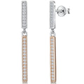 Sterling Silver and Rose Gold Plated Double Rectangle Drop Earrings Set With Cubic Zirconia Stones. 2 X 34 mm In Diameter Set with 1 mm Stones- The Finest AAA Grade Cubic Zirconia Stones. 925 Sterling Silver. The Finest AAA Grade Cubic Zirconia Stones. 925 Silver - Hypoallergenic , Rhodium Finished For Tarnish Free Wear. Supplied With Gift Packaging