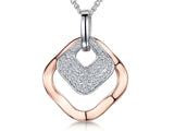 Sterling Silver and Rose Gold Plated Open Square Earrings One With Pave Cubic Zirconia Stones. Comes On A 16-18 Inch Silver Chain. 18x23 mm In Diameter Set with 1 mm Stones- The Finest AAA Cubic Zirconia Stones. 925 Sterling Silver Rhodium Finished -Tarnish Free. Supplied with Gift Packaging,