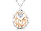 Sterling Silver and Rose Gold Plated Circle Pendant With A CZ Heart . 20 X 29 In Diameter.  Comes On a 16-18 inch Adjustable Chain. The Finest AAA Cubic Zirconia Stones. 925 Sterling Silver - Hypoallergenic . Rhodium Finished  For Tarnish Free Wear . Supplied with Gift Packaging.