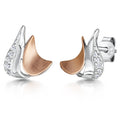 Sterling Silver And Rose Gold Stud Earrings- Satin Finished With A Cubic Zirconia Feature - JOOLS By Jenny Brown