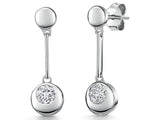 Sterling Silver Drop Earrings With Circular Elements Set With 5mm Cubic Zirconia's - 28mm Long. The Finest AAA Grade Cubic Zirconia Stones. 925 Silver - Hypoallergenic , Rhodium Finished For Tarnish Free Wear. Supplied With Gift Packaging.