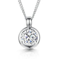Sterling Silver Rubover Pendant With 5mm Cubic Zirconia. 7x10mm Overall Diameter. Rhodium Finished For Tarnish Free Wear. 925 Sterling Silver. Comes With 16-18 Adjustable Chain and Free Gift Packaging