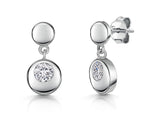 Sterling Silver Drop Earrings With Circular Elements Set With 5mm Cubic Zirconia's - 19mm Long. The Finest AAA Grade Cubic Zirconia Stones. 925 Silver - Hypoallergenic , Rhodium Finished For Tarnish Free Wear. Supplied With Gift Packaging.